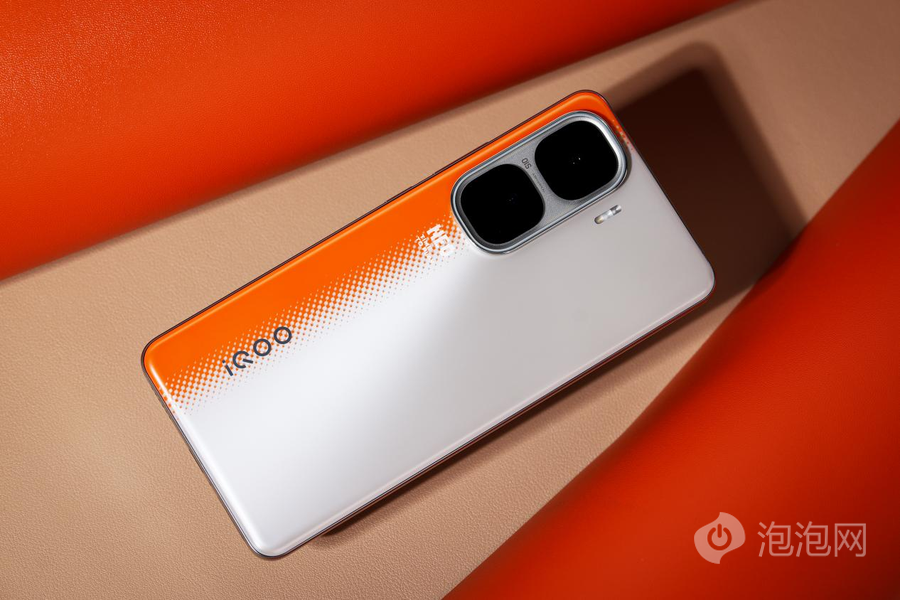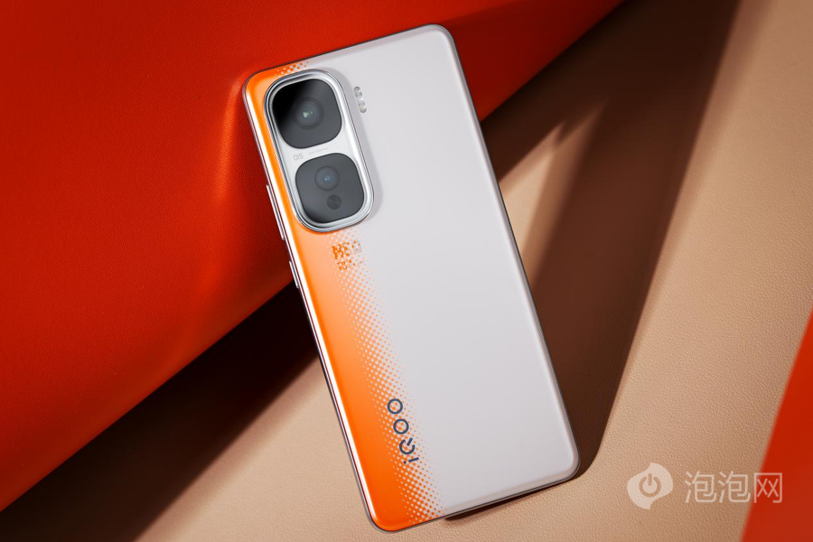 iQOO Neo 10 Pro提供疾影黑、驰光白以及拉力橙三种颜色,我们拿到的就是拉力橙配色,采用了双拼的后盖,两种颜色之间采用经典的马赛克纹理进行过渡,更体现科技感。手机背部采用的是缎面AG玻璃,手感细腻,配合8.1mm的机身厚度以及206g的重量,带来非常舒适的手感。