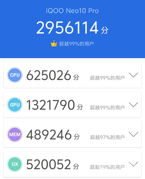 经过实际的测试,iQOO Neo 10 Pro在安兔兔测试的成绩为2956114分。