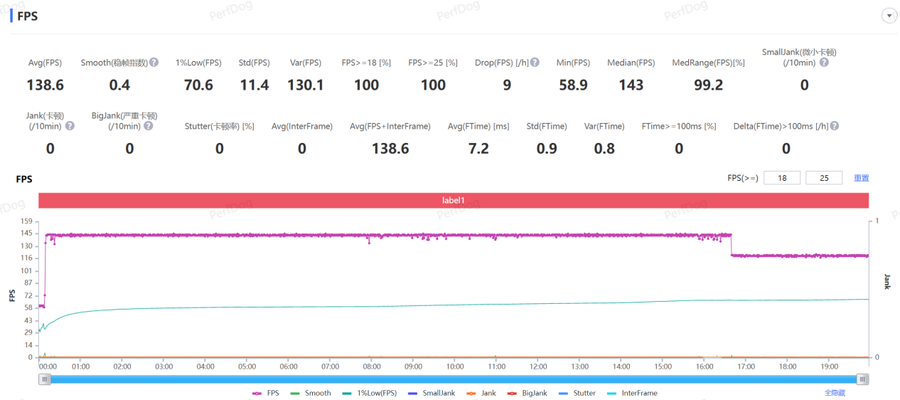 iQOO Neo 10 Pro还支持《原神》的超帧技术,可以实现144FPS的超高帧率,让游戏流畅度得到明显的加强。经过PerfDog实测,iQOO Neo 10 Pro在开启超帧之后,《原神》是可以跑到144FPS的,不过随着游戏时间的增加,手机的帧率在最后阶段会降至120FPS,在流畅度方面依然是有着非常优秀的表现。