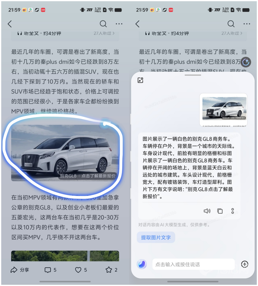 小V圈搜可以将想要了解的信息直接圈选出来,这样小V就可以根据图片进行搜索,并给出对应的信息。