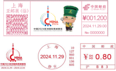 澎湃新闻记者从中国邮政获悉,《中国2024亚洲国际集邮展览》纪念邮票于11月29日当天在上海首发。