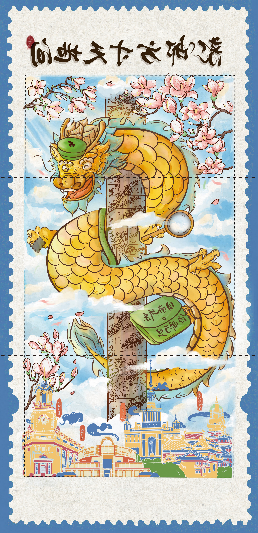 此外,由上海邮政特别为本次邮展设计定制的“龙游方寸天地间” 打卡导览图十分抢眼。正面一条祥龙腾空而起,穿越祥云,在上海市花白玉兰的掩映下,鸟瞰上海诸多地标建筑,每一片龙鳞都是一个盖章处,分别对应《陋室铭》中一个字。观众根据导览图背面的指引可以一边逛各个有趣的展位,一边集戳,最终可集齐一篇“有龙则灵”的古文佳作。