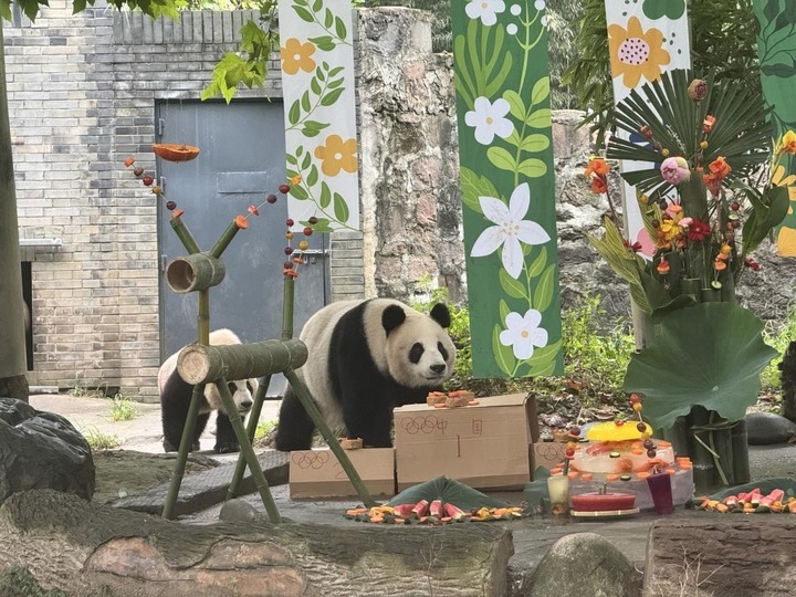 2024年9月,中国大熊猫保护研究中心雅安碧峰峡基地为熊猫们精心准备了“礼物”。新华社记者薛晨 摄