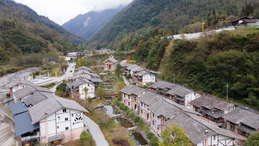 2022年11月17日拍摄的位于四川宝兴县蜂桶寨乡的熊猫新村(无人机照片)。新华社记者胥冰洁 摄