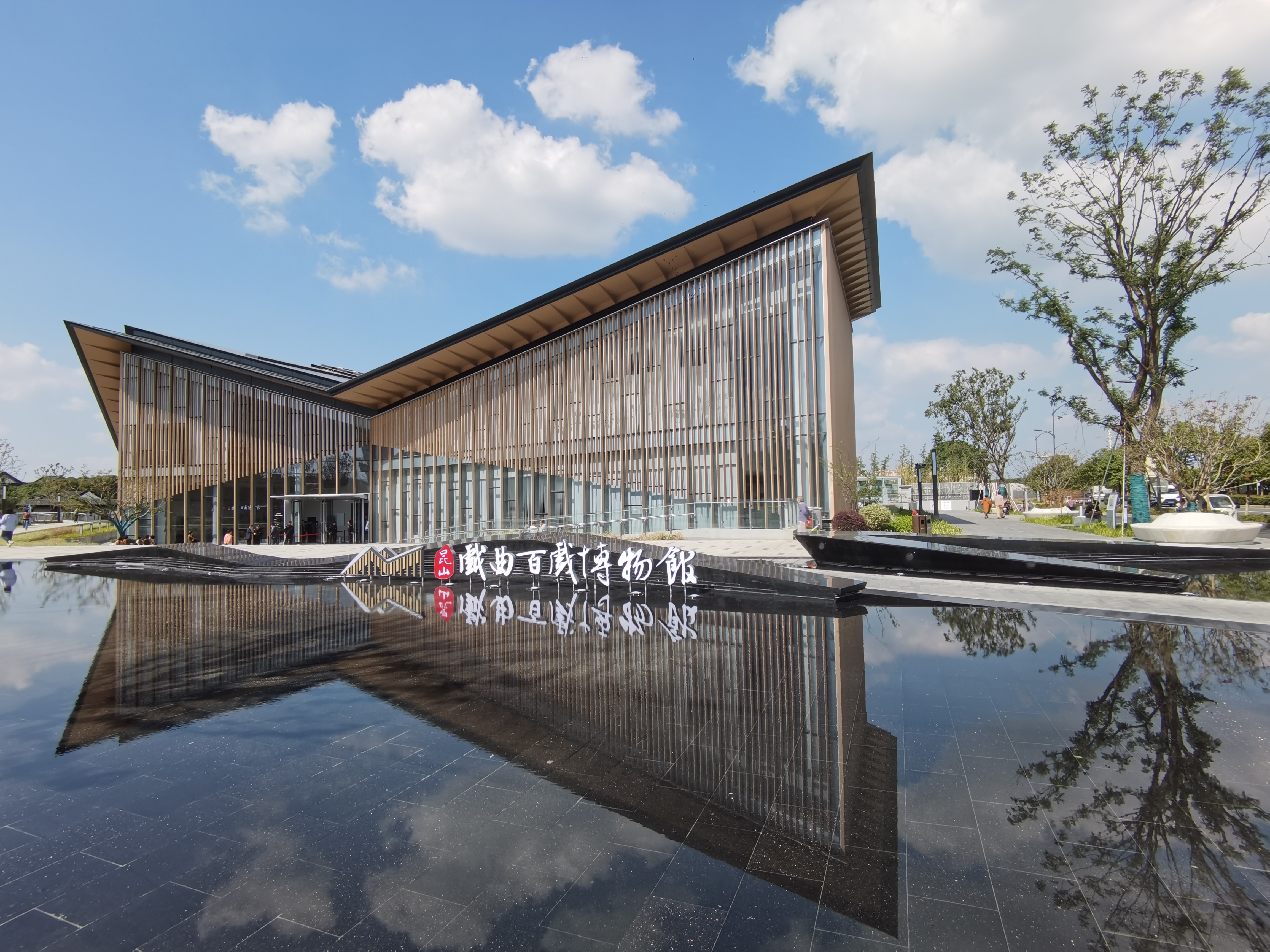 戏曲百戏博物馆总建筑面积约1.7万平方米,建筑之形取“工尺谱”意。馆内设有各陈列展厅、公共教育和文创区,融入戏曲主题收藏、展示、教研、演艺等功能,全面展示中国戏曲发展历程和348个戏曲剧种特色。在昆曲故里,戏曲百戏博物馆演绎昆山腔在阳澄湖畔孕育滋长的历史,充分展现中国戏曲艺术新的魅力。