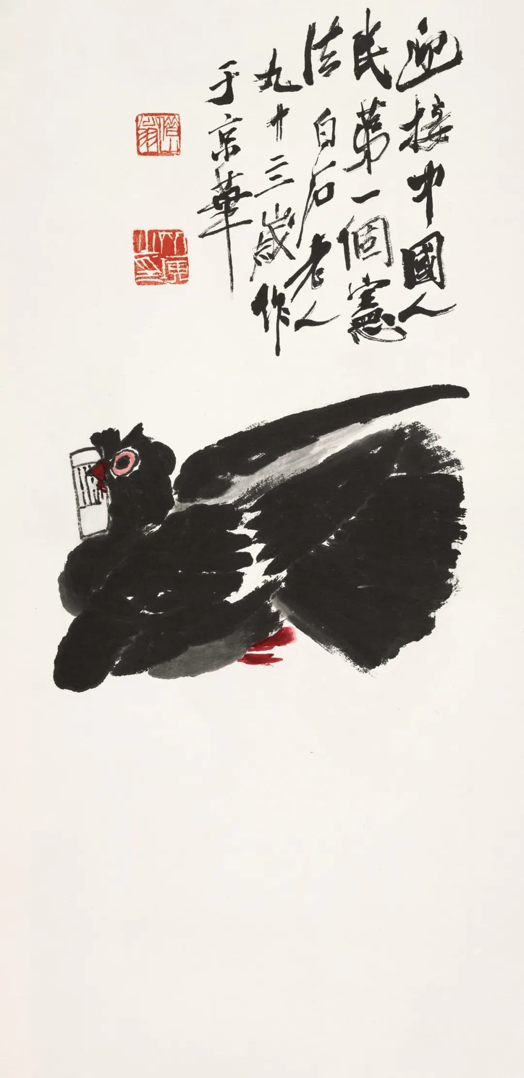 ▲ 迎接中国人民第一个宪法 齐白石 95×47cm 1954年 国家博物馆藏