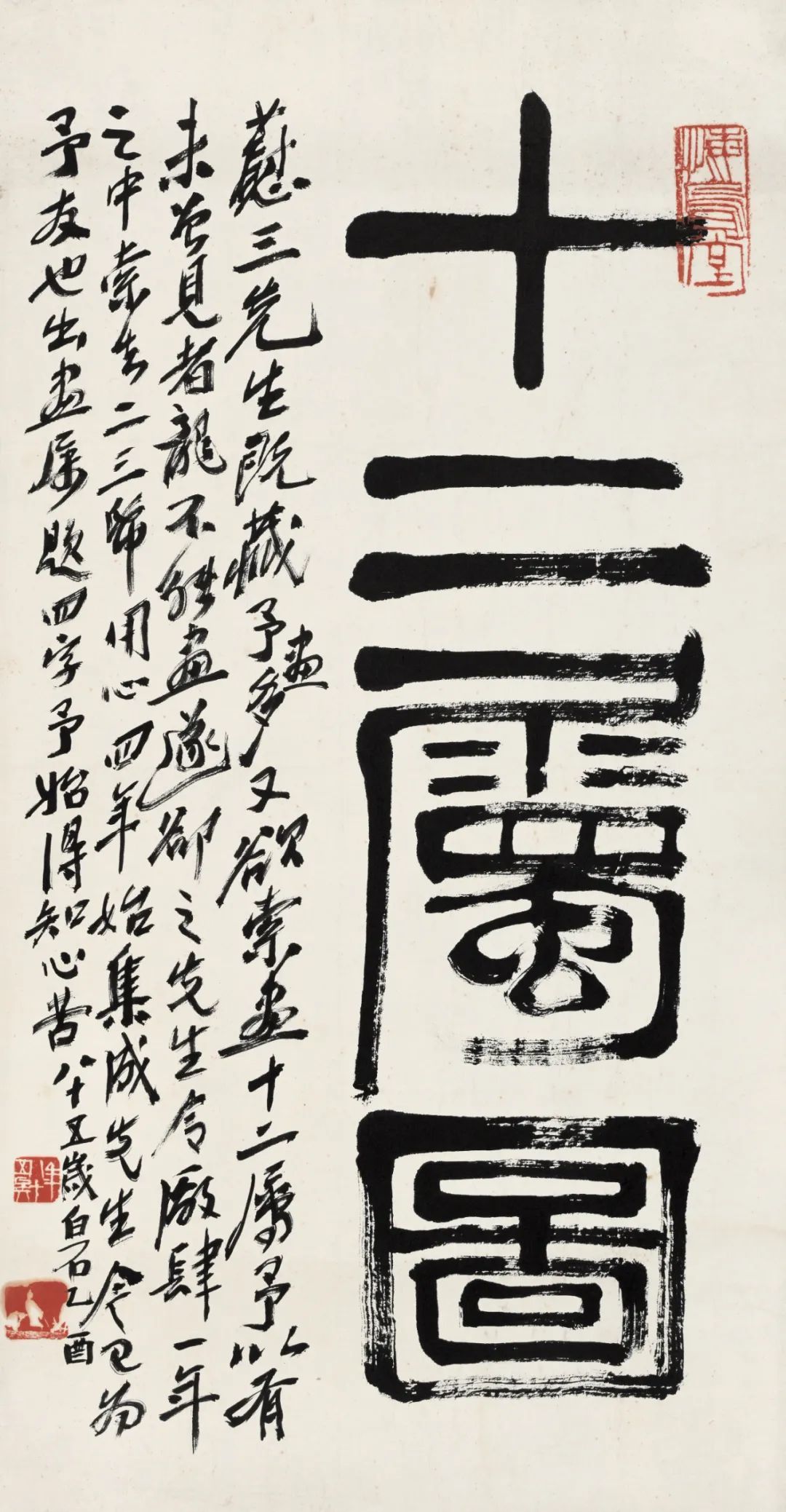 ▲ 齐白石 篆书十二属图 托片 纸本 68.5cm×36cm 1945年 北京画院藏