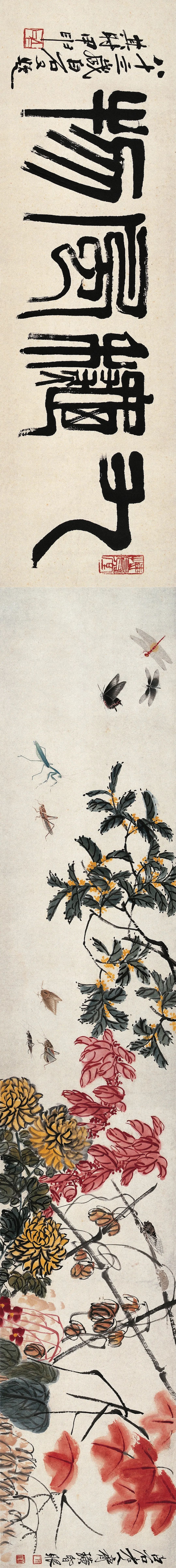 ▲ 齐白石 豆角蟋蟀 137×37cm 1920年 梅兰芳纪念馆藏