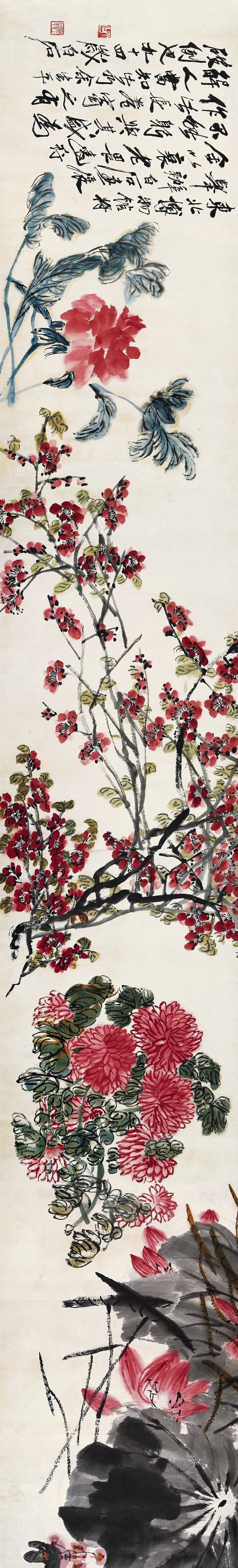 ▲ 齐白石 折枝花卉卷 46.3cm×364.8cm 1954年 辽宁省博物馆藏