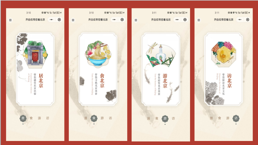 “齐白石带您看北京”手机应用程序以线上+线下的形式,带领观众沿着白石老人的足迹重游一遍北京城。他在哪儿听戏,在哪儿逛园子,在哪儿访朋友,又在哪儿下馆子,一应俱全。