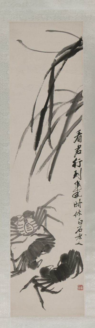 ▲ 齐白石 看君行到几时休 131.8cm×33cm 无年款 中国美术馆藏