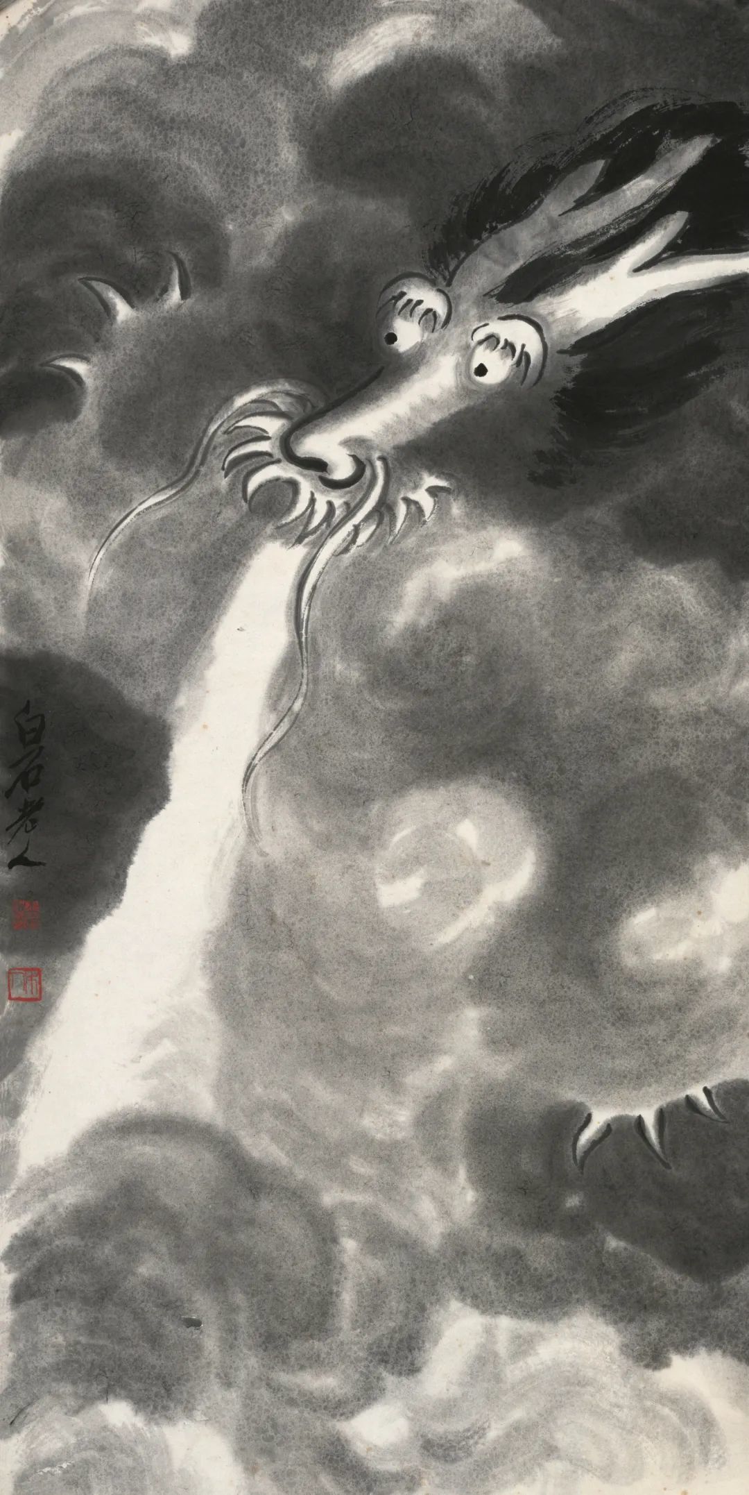 ▲ 齐白石 云龙 托片 纸本墨笔 69.5×35cm 无年代 北京画院藏