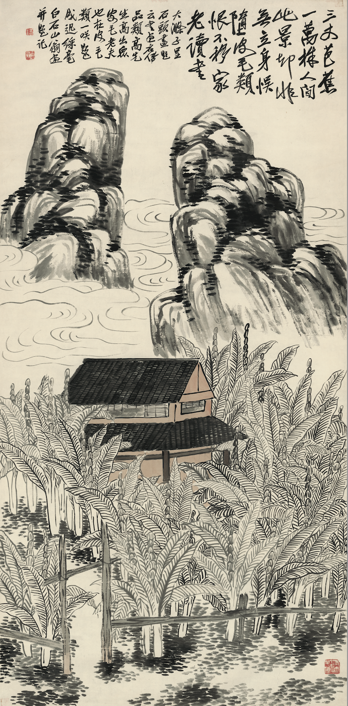 ▲ 齐白石 芭蕉书屋图轴 133.5cm×66cm 无年款 首都博物馆