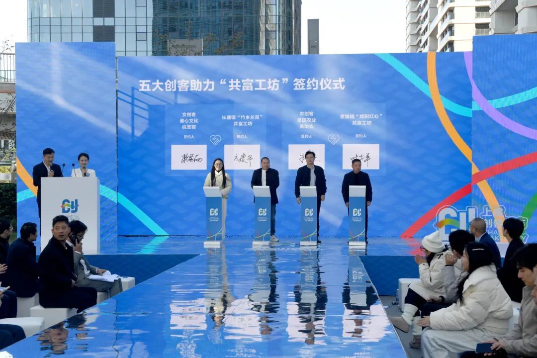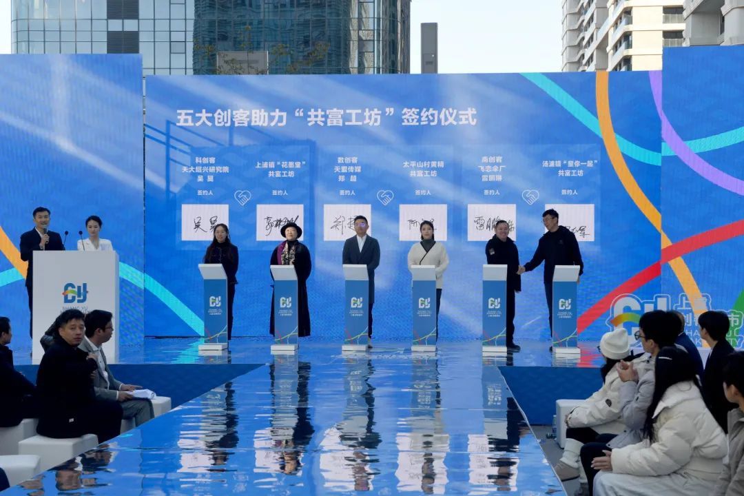 活动上,发布了创客城市年度宣传片、VI视觉系统和虞创TopShow榜单,专题推介了“创客城市”、“零创湾·鸿雁”和“虞创学院”,举行了“共富工坊”人才孵化培养基地(零创湾·鸿雁)揭牌仪式和五大创客助力“共富工坊”签约仪式。