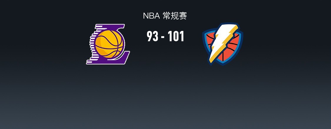 第四节湖人拉塞尔拿下6分,雷霆亚历山大拿下15分,最终湖人93-101不敌雷霆