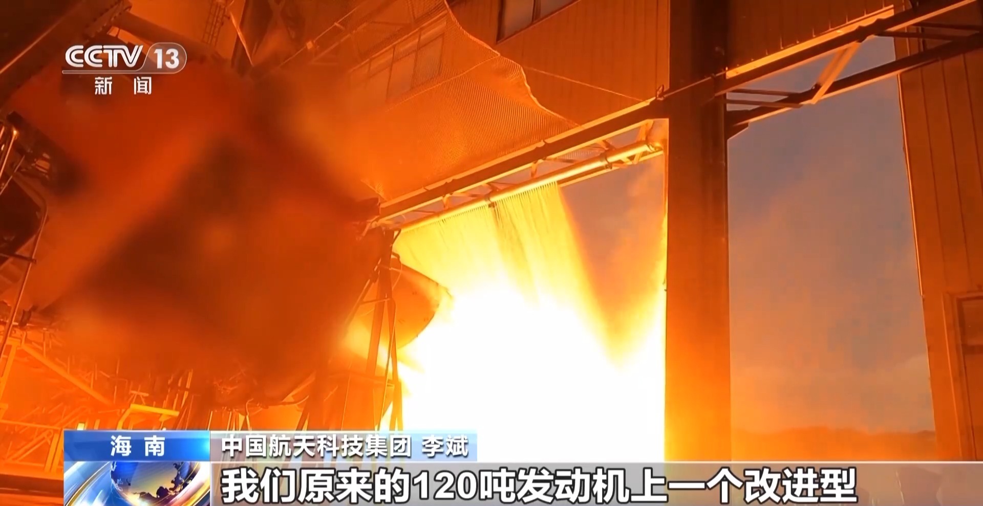 中国航天科技集团 李斌:这次发动机是在我们原来的120吨发动机上一个改进型,它是一个补燃循环的泵后摆的发动机。这个发动机和原来的120吨发动机相比,重量减了20%,推力提高了5%,综合性能也有了改善。