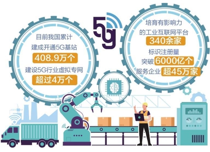 工业和信息化部副部长张云明介绍,5年来,“5G+工业互联网”在新型工业化中的基础支撑作用持续强化。一方面,我国累计建成开通5G基站408.9万个,建设5G行业虚拟专网超过4万个,加快关键核心技术攻关和工业级5G产品研发推广,为工业互联网落地提供了关键使能技术。另一方面,工业互联网网络、标识、平台、数据、安全功能体系一体推进,发布3项国际标准、70多项国家标准,培育340余家有影响力的工业互联网平台,标识注册量突破6000亿个,服务超45万家企业。