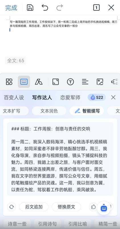 除去日常沟通和社交媒体文案,我们再来看看生产效率的场景,比如打工人每周都得写的工作汇报。