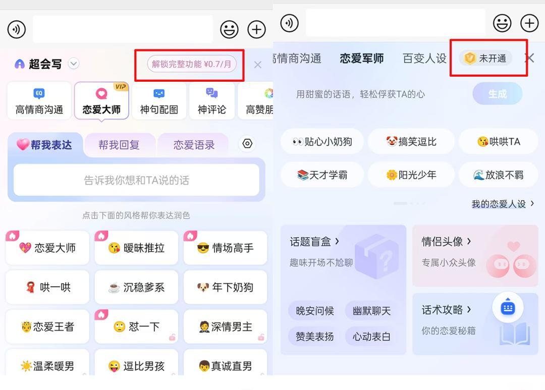 但是,讯飞输入法的恋爱军师功能和百度输入法的恋爱大师功能,还有额外付费。教人恋爱果然是一笔好生意。