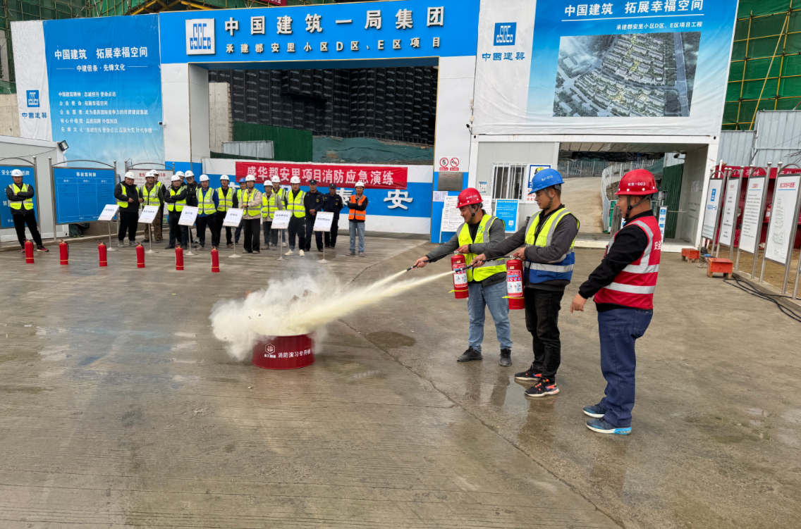 为切实做好消防安全管理工作,进一步提高项目抢险救援的反应和应急处置能力。11月22日上午,中建一局二公司郡安里小区D区E区项目施工现场组织开展建筑工地消防应急实战演练。监理、总分包管理人员、工人共计20余人参加演练。