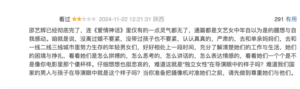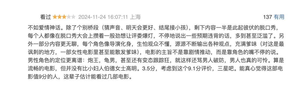 如今的舆论场上,一旦对这部电影有了质疑的声音,就会被网友指责立场问题。敢说《好东西》不好,变成一件异常考验勇气的事,人们恨不得先验明正身,再小心发言。