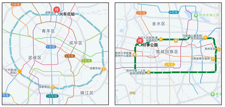 反过来,地铁环线对于轨道交通网络完善衔接和发展也具有举足轻重的作用。北京、成都和西安等城市,是典型的“环状”城市,其具有以天安门、天府广场和钟楼为地标的城市中心,具有多条环状快速路和绕城高速,辅以放射型骨架干道,形成环状的城市布局和立体式交通网络。除这三座典型的“环状”城市外,国内许多大城市均具备环状高架等快速地面交通,也对环状轨道交通的建设十分狂热。