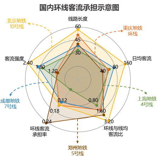 由于各大城市的结构组团、线网布局、环线规划时间和定位各不相同,因此所设计的环线虽核心功能相似,但在线路长度及围合面积、客流量及分担率等指标上各有千秋。本章简要统计了这些线路指标,试图回答怎样的环线是一条“优秀”的环线。