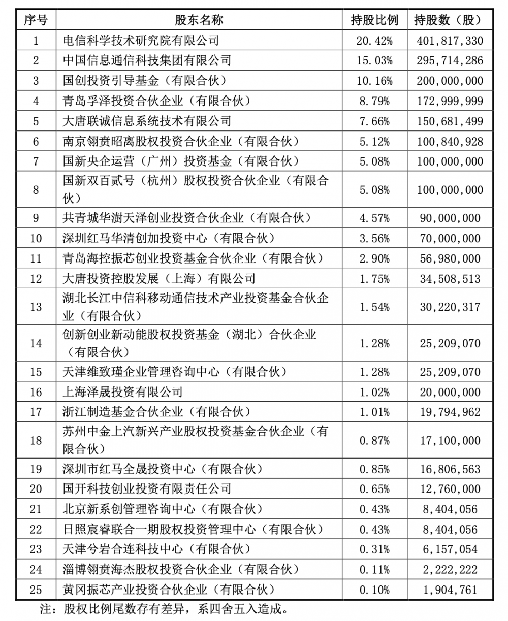 本次转让前,大唐联诚持有宸芯科技约1.5068亿股,占总股份的7.66%。宸芯科技股权结构如下: