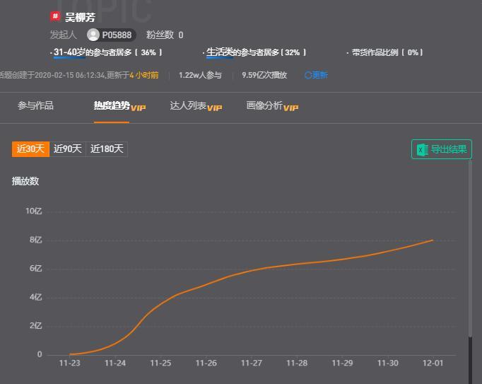 11月26日,吴柳芳抖音账号被禁止关注,理由是“违反社区规则”,这进一步加剧了相关讨论。新抖数据显示,不到10天时间,吴柳芳的抖音同名话题播放量就暴涨13亿次。
