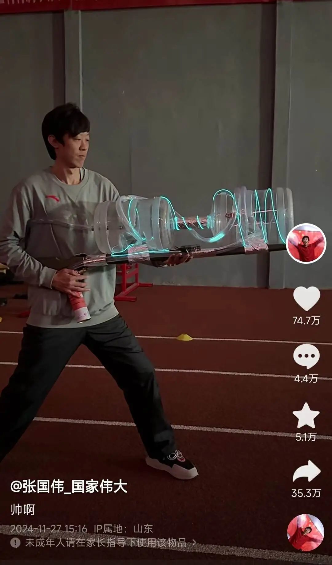 一类是挖掘运动员身上的某个特长,转型成为搞笑博主、探店博主等垂类博主,其中最典型的是靠“龙吸水”一战成名的跳高世锦赛亚军张国伟。这类账号非常考验运动员在搞笑、表演上的个人天赋。