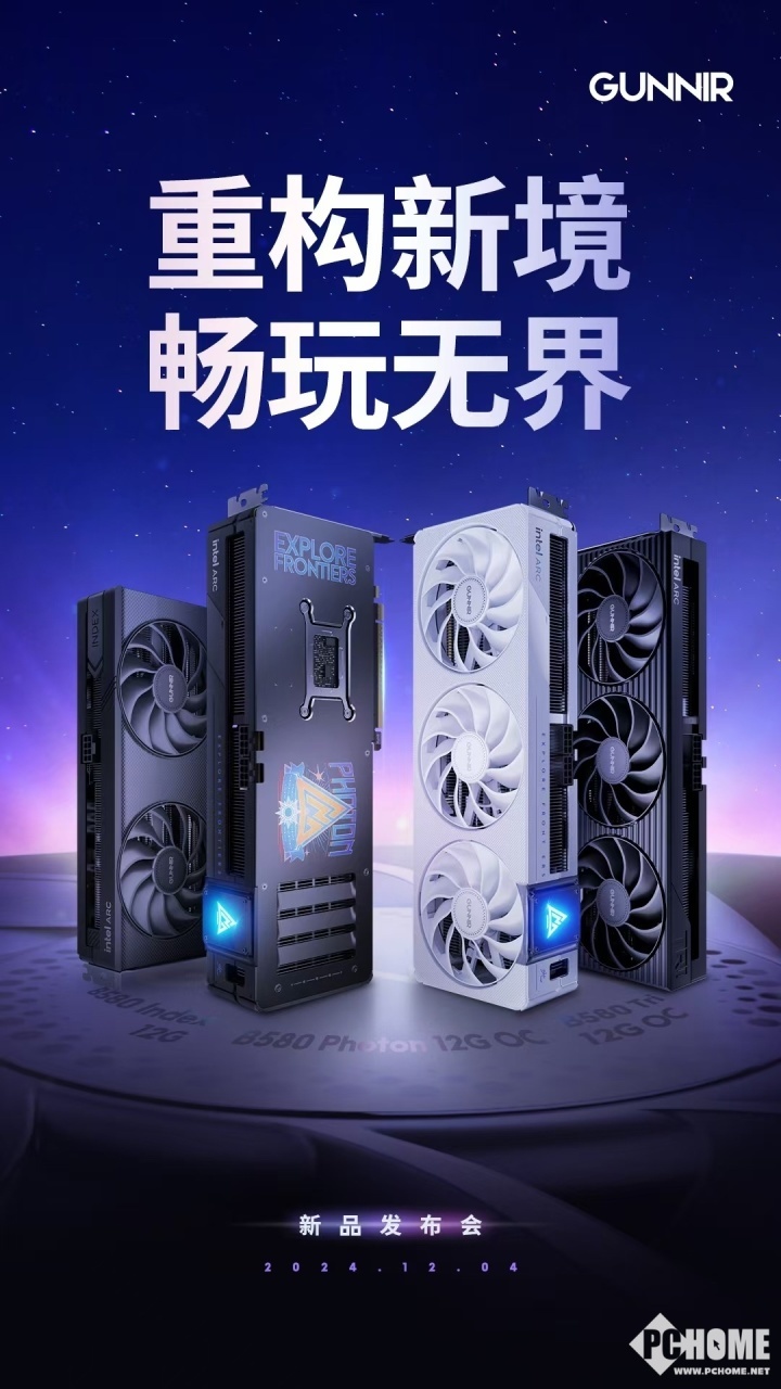 蓝戟现已带来了四款锐炫B580新卡,分别是B580 Tri 12G OC,B580 Photon 12G OC黑,B580 Photon 12G OC白和B580 Index 12G四款产品,售价2049元起。