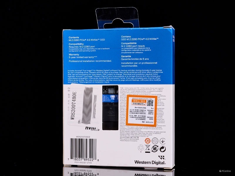 包装盒右上角则醒目地标注了这是一块2TB版本的固态硬盘,另外西部数据也提供其他多个容量规格,玩家可以根据自己的需求进行选购。