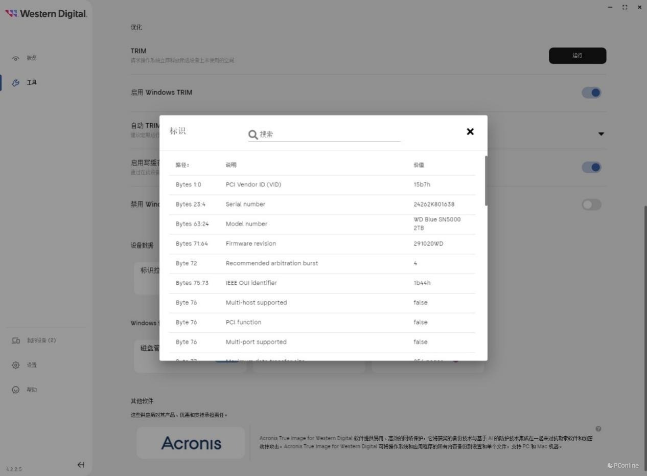 除了强势的性能表现外,这款固态硬盘在软件上也颇有建树,西部数据为WD Blue SN5000准备了两款专用的软件,分别是Western Digital Dashboard与Acronis True Image for Western Digital。