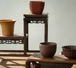 原料呈紫棕红色调,烧成后呈红猪肝色,肌理细腻光滑,成品质朴自然、沉稳大度。