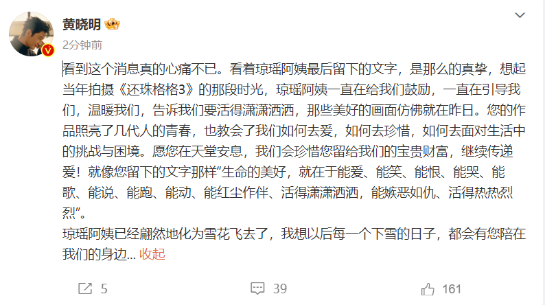 黄晓明发文