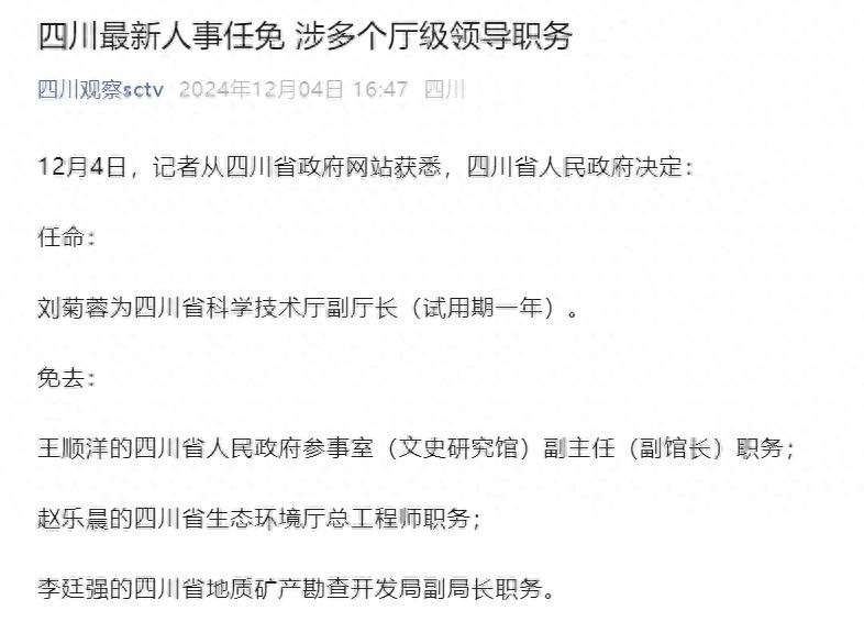 刘菊蓉为四川省科学技术厅副厅长(试用期一年)。
