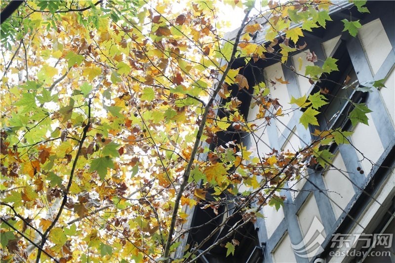 东方网记者柏可林12月4日报道:寒风渐起,落叶纷飞,气温降低的同时,树叶却上起了暖色调的妆容。上海是一座被梧桐树包围的城市,“梧桐区”的小马路总是充满历史韵味与人文风情。最近,梧桐树由绿泛黄,形成一幅幅温馨而宁静的画面。