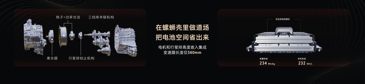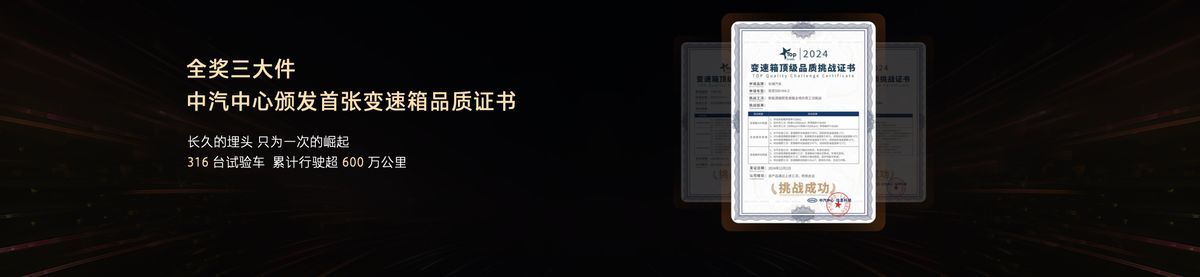 在结构设计上,Hi4-Z拥有全球最短变速器箱,通过30余项发明专利技术,如电机转子与行星排嵌套式设计、超薄离合器机构、传动轴与主减一体焊接技术等,将纵向尺寸缩短至560mm,比单档混联变速器箱短20%,为电池布置腾出空间,并通过中汽中心严苛测试获得“顶级变速箱品质挑战证书”。