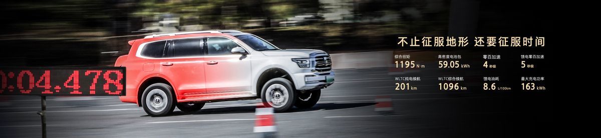电池安全方面,采用专为混动越野开发的高安全、高体积密度动力电池,运用高比能活性材料、超导离子电解液、全极耳工艺,以及双层高强度模组、双液冷循环等领先技术,实现234Wh/kg能量密度和232wh/L体积密度,在满足电量目标的同时最小化电池尺寸,成功将59.05kW·h动力电池包融入中大型越野SUV,使WLTC工况纯电续航达200km以上,成为全球纯电续航最长的插混越野架构。