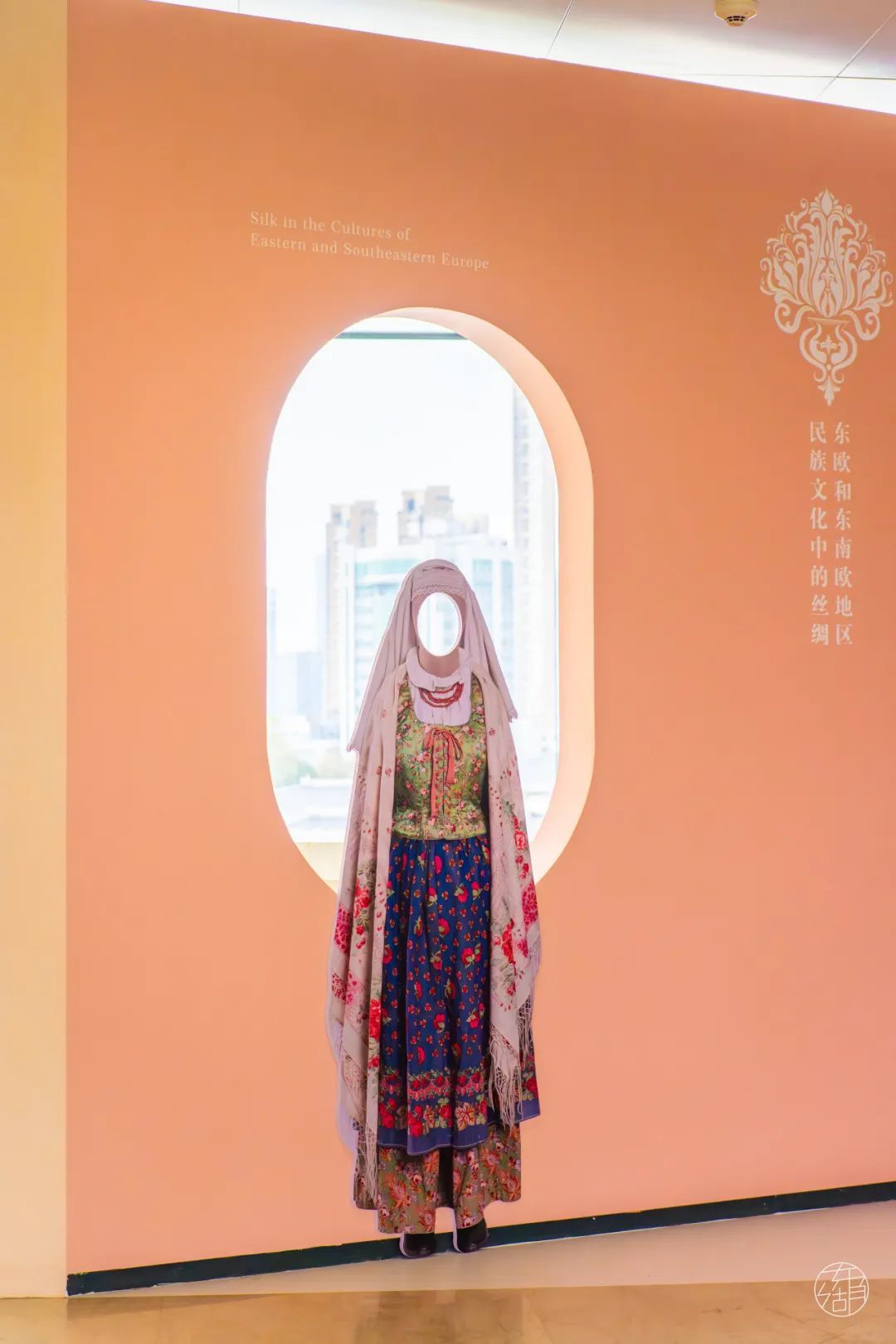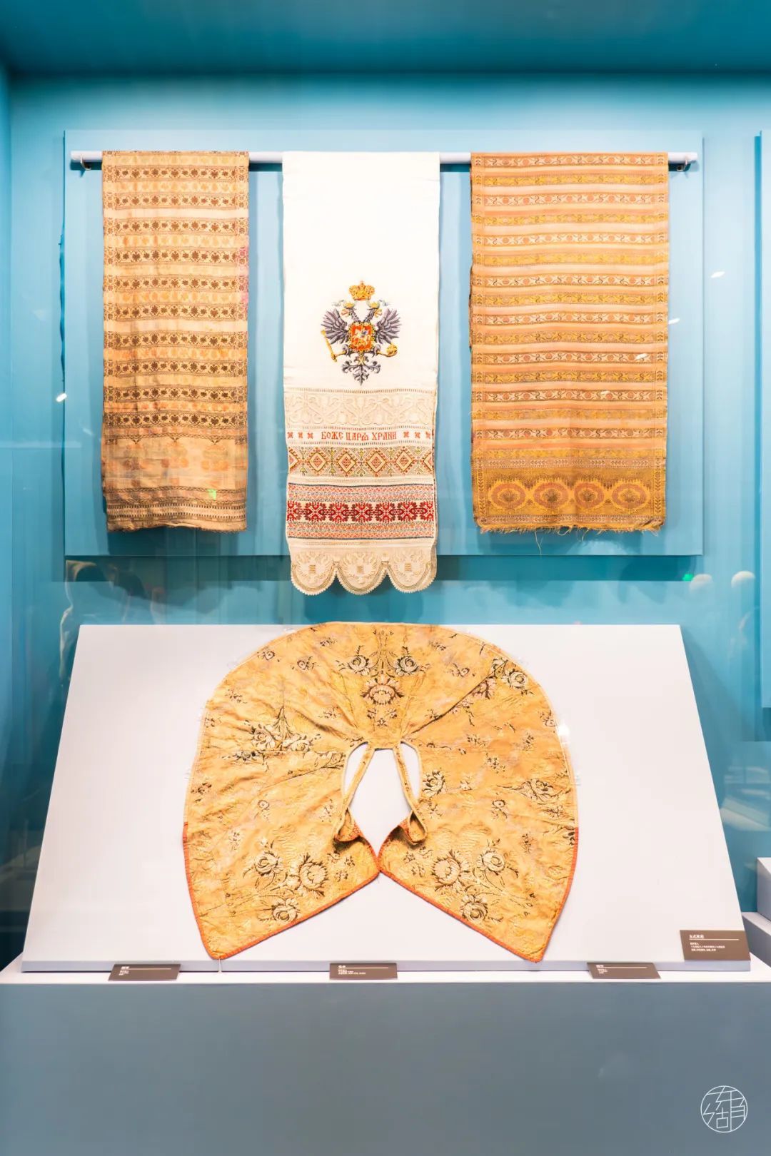 走过展厅门口半遮掩的丝线屏风,283件来自俄罗斯民族博物馆的丝绸文物依次展开,大到服装小到配饰,高饱和的色彩带来强烈的视觉冲击,那种感觉就好像来到了某个时装品牌的高定展现场。