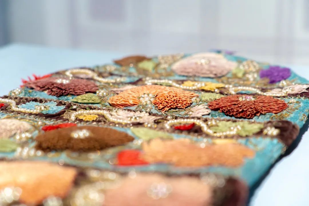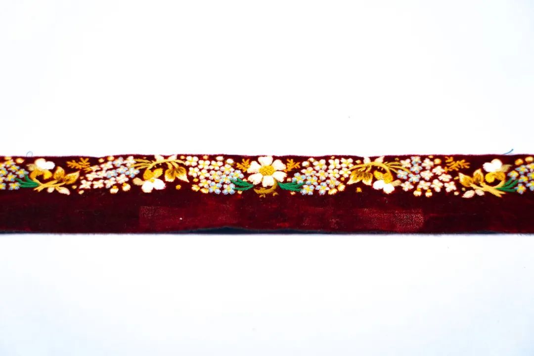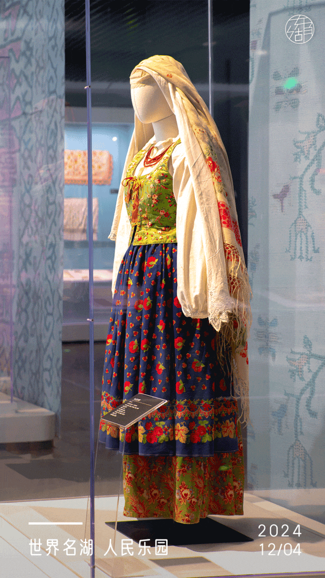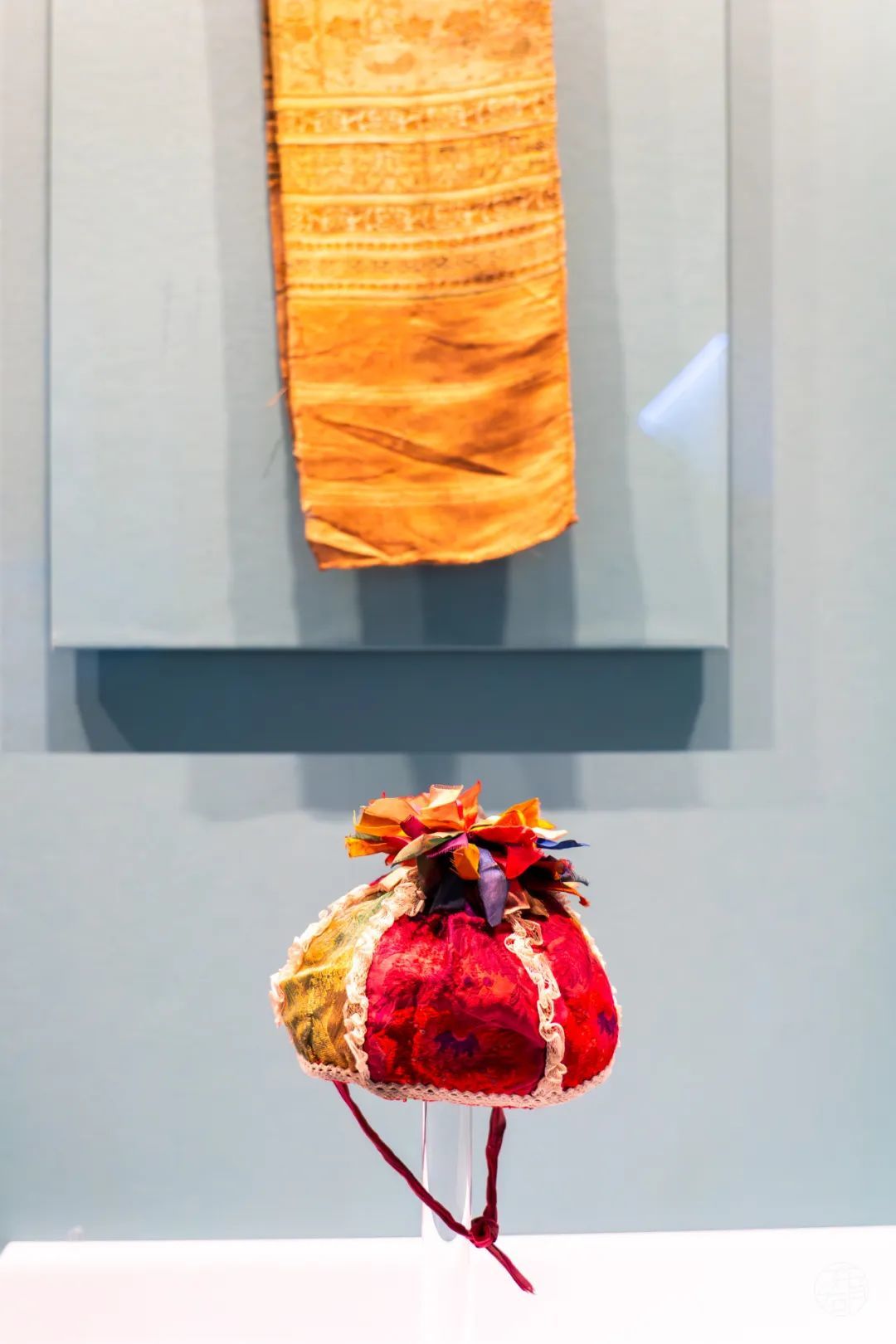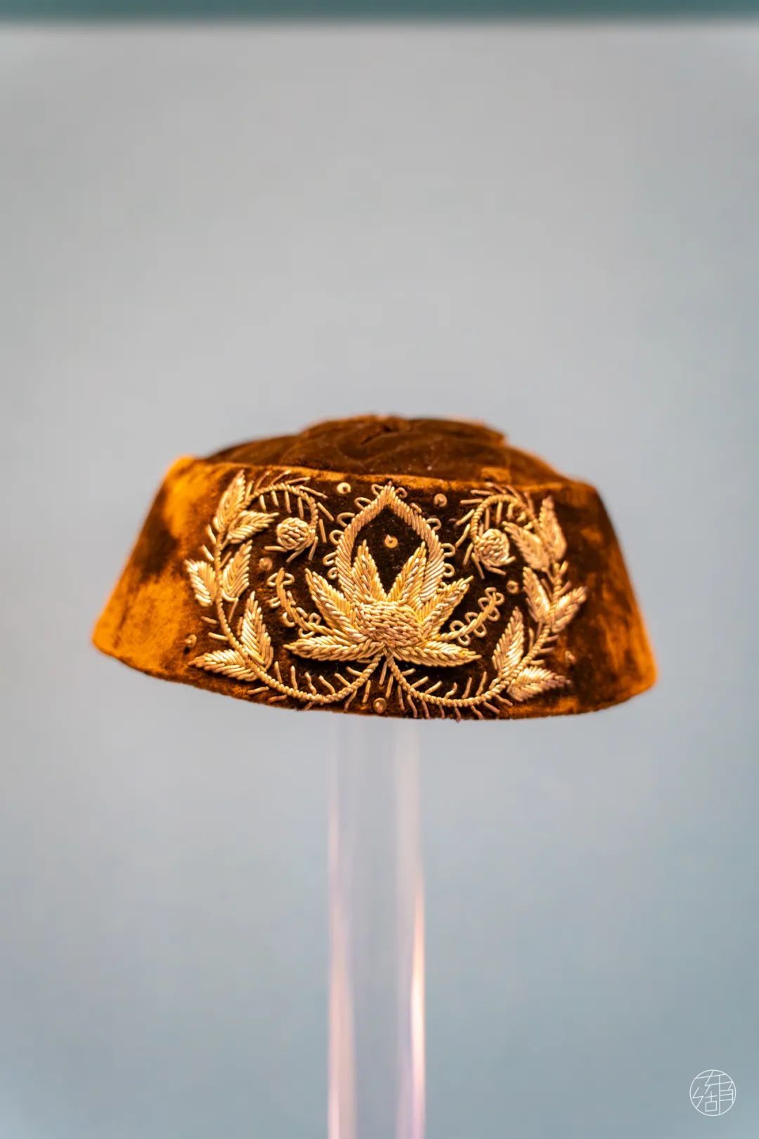 格鲁吉亚—卡尔特利人的「女士刺绣头饰」不属于一眼惊艳的展品,但细看便能发现精妙之处。丝绒材质让饰品更显沉静,刺绣花朵缀在上面栩栩如生。