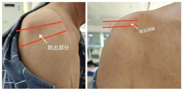 患者患侧上肢屈肘,肘部贴近胸壁时,如果手掌不能摸到健侧肩膀最高点,或者手掌触摸健侧肩膀最高点时,肘部不能贴近患者胸壁则表现为肩关节半脱位。