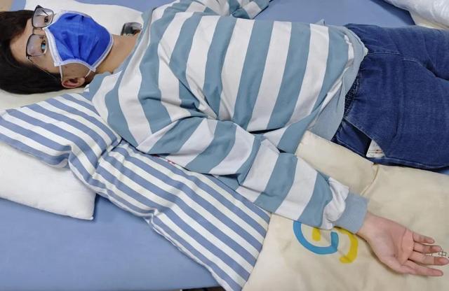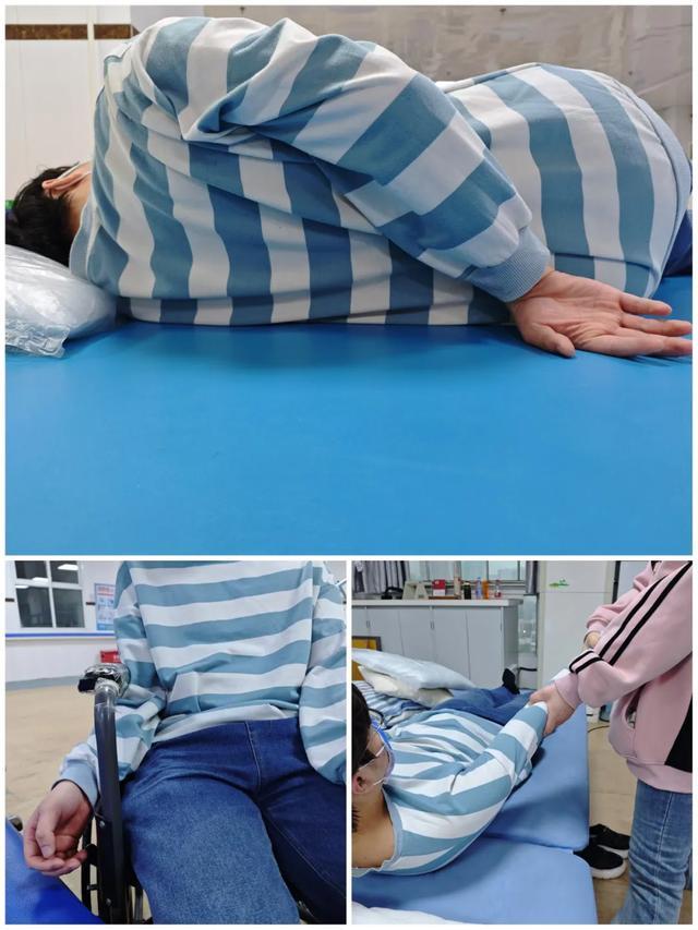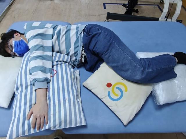 2、健侧卧位时,患侧肩和上肢充分前伸,肘关节伸展。