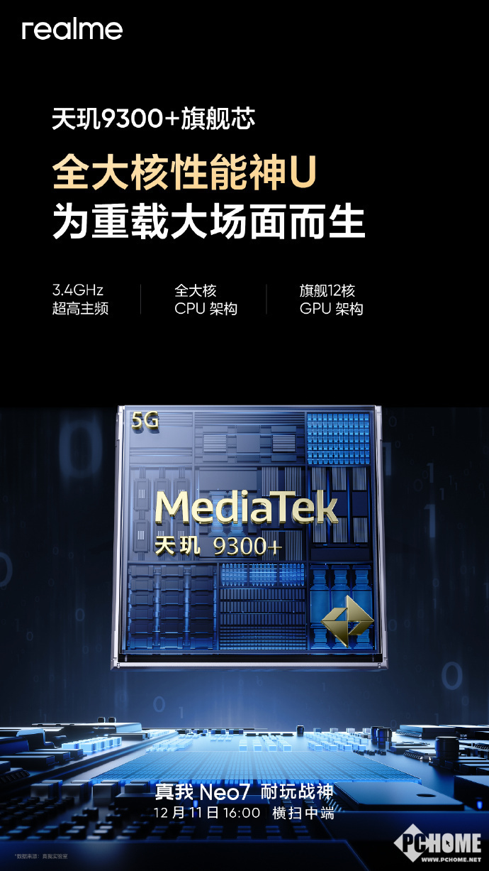 真我手机官方已经官宣,将于2024年12月11日16:00举办新品发布会,正式发布定位“中端电竞旗舰”的真我Neo7系列手机。