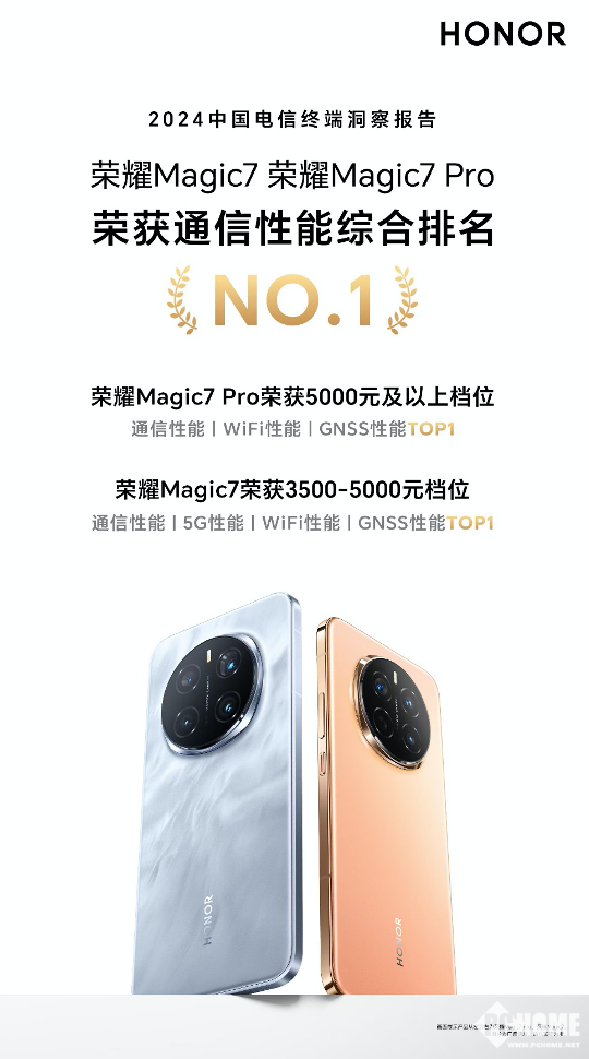 荣耀Magic7 Pro和荣耀Magic7分别斩获5K+档位、3.5K—5k档位各项通信性能排名TOP1,荣耀Magic7毫无意外的成为系统级AI的标杆机型。