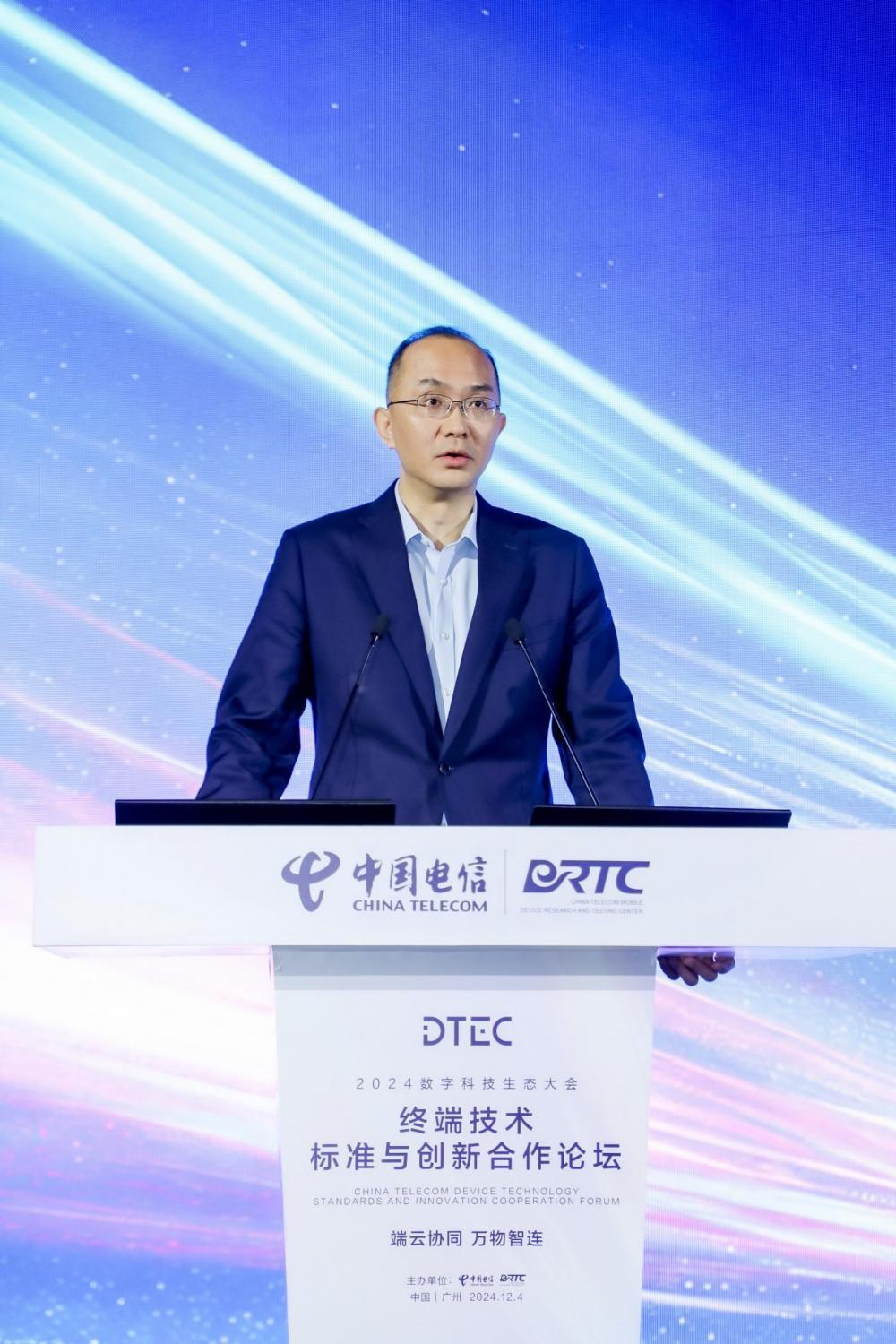 中国电信副总经理李峻在致辞中表示,终端领域的技术创新和产业变革呈现出连接+、AI+、生态+三大发展趋势,中国电信在终端技术创新方面积极探索,并在AI终端、卫星终端及终端应用等方面取得了一系列的创新成果。