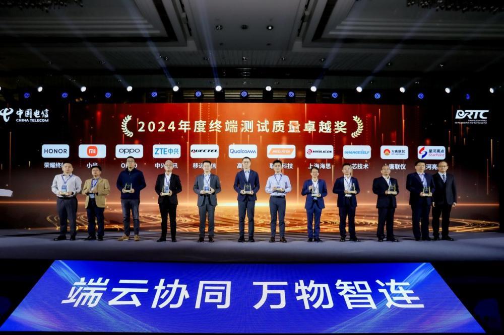 终端测试是中国电信提升终端品质和用户体验,推动战新业务规模发展的重要保障,长期以来得到合作伙伴的鼎力支持。中国电信对2024年在终端测试工作中表现突出的终端厂商、芯片厂商、仪表厂商颁发终端测试质量卓越奖,推进产业共研、共测,推动全品类终端品质升级。