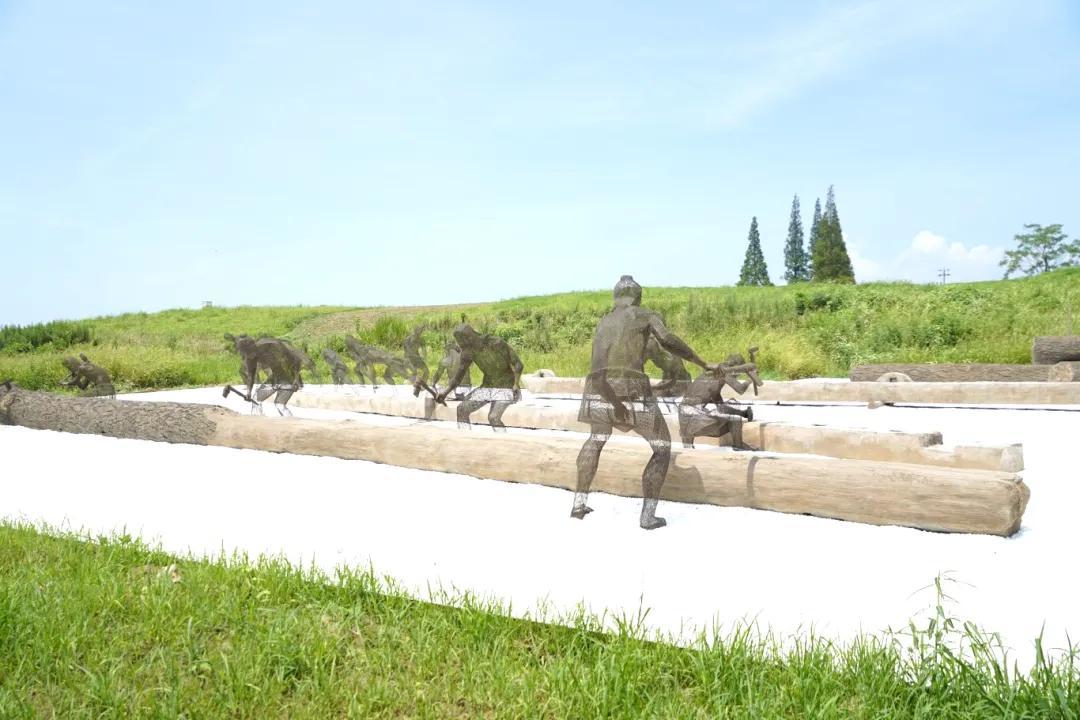 从南门进入良渚古城遗址公园,学生们向东前行,就来到了陆城门。陆城门呈“品”字形结构,五千多年前是良渚古城唯一一处陆路交通通道,良渚先民狩猎而归步入古城的网格雕塑静静伫立着,学生们在这里感受到良渚文明的脉搏。
