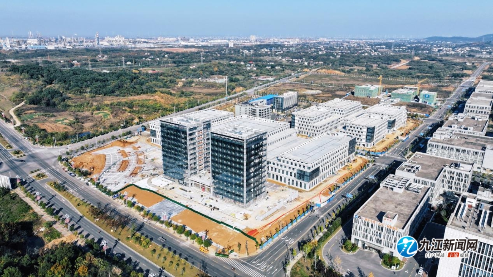 12月4日,记者在鄱阳湖生态科技城新产业综合体三期项目现场看到,7栋厂房、2栋配套设施大楼主体建设均已完成,正在进行电缆敷设、室内装修、外围市政绿化等工作,部分签约入驻企业也在同步装修中。