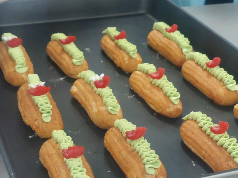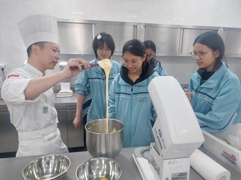 上海工匠刘福焕老师带来了精彩的西点制作职业培训课程。他以其精湛的西点制作技艺和对糖艺艺术的独到见解,为烘焙专业的同学们展示了西点艺术的无限可能。从基础技巧到创新实践,他耐心细致地教授了如何制作西点——“开心果闪电泡芙”,并传授了这款点心的制作要领和精髓,让同学们在实操中再次认识了西点制作的基本功和技巧要求。